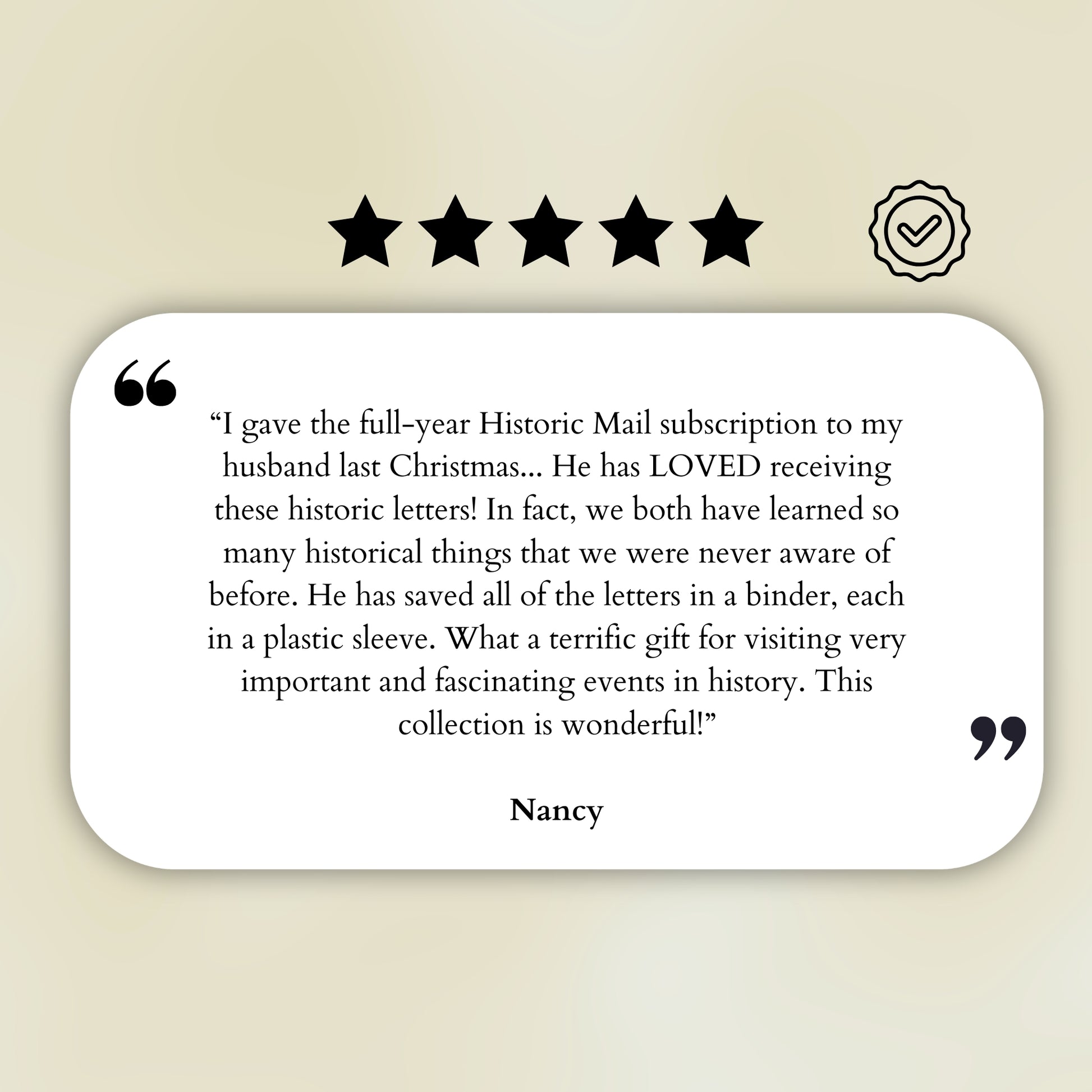 “Very fun to get unusual, yet interesting historic letters. And the background info sheet makes it even better! Huge hit!” - Daniel ⭐⭐⭐⭐⭐
